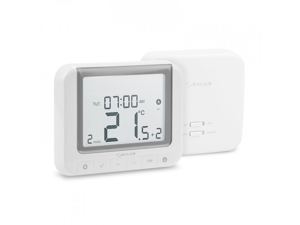 RT520RF je digitální pokojový termostat používaný pro regulaci teploty místnosti. Termostat funguje tak, že udržuje komfortní podmínky v místnosti dle nastaveného harmonogramu a nebo dle teploty nastavené uživatelem. Termostat je z výroby spárovaný s přijímačem. Přijímač je připojený ke kotli.